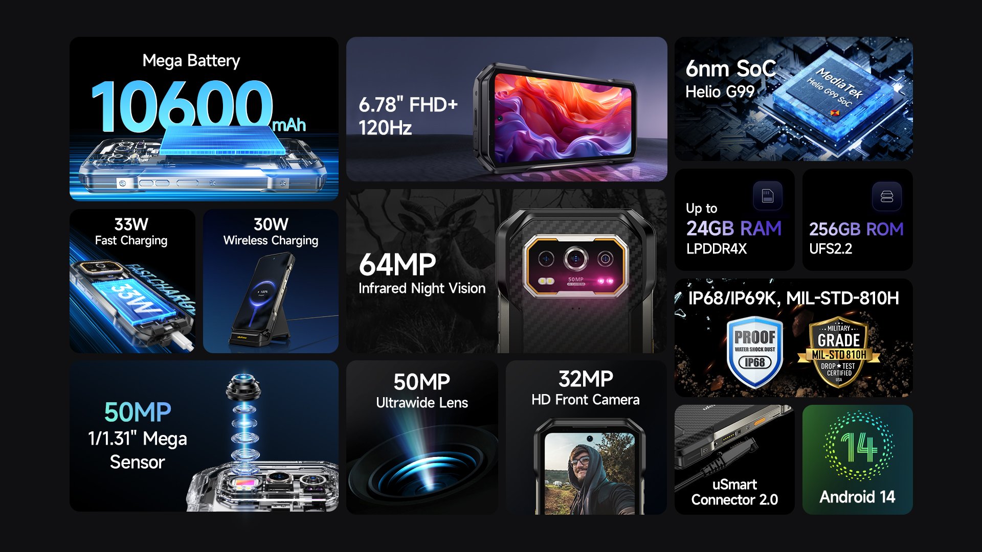 يوليفون ارمور 27 ذاكرة رام 12 جيجابايت وذاكرة داخلية 256 جيجابايت لون اسود