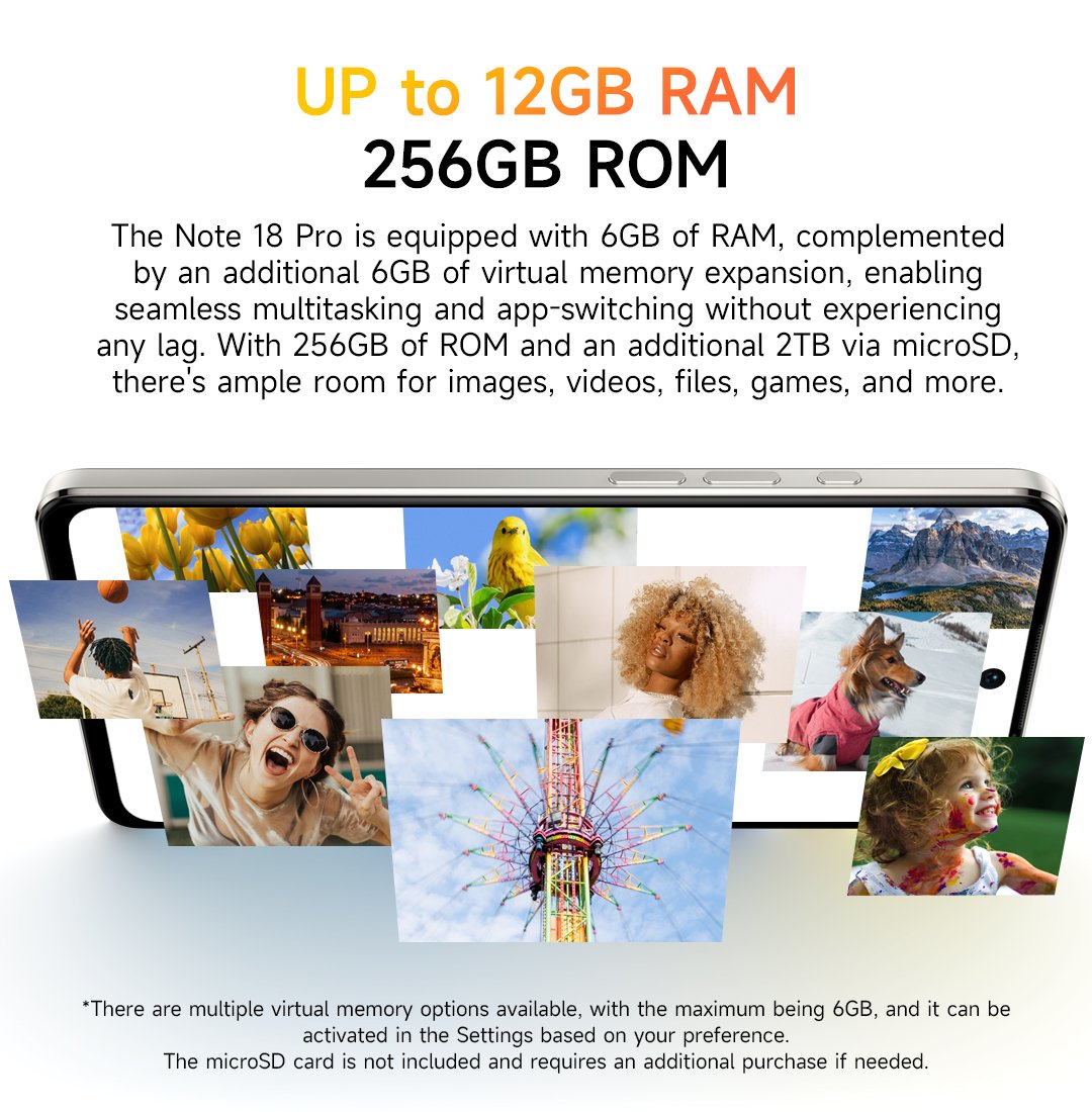 يوليفون نوت 18 برو ذاكرة رام 6 جيجابايت وذاكرة داخلية 256 جيجابايت