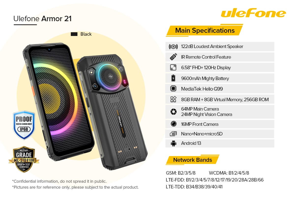 يوليفون ارمور 21 ذاكرة داخلية 256 جيجابايت وذاكرة رام 8 جيجابايت لون اسود